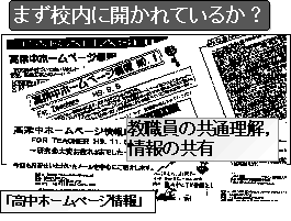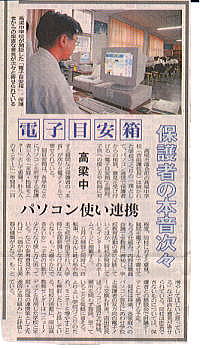 先生方の指導に感謝します H10.6月受信 一昨日、下校中の生徒三人がジュースを飲みながら歩いているのを外の仕事から 帰られていた先生が呼 び止め指導されていたところを偶然見ましたが、生徒達にと っても、高中にとってもいい先生がいるなと嬉しく 思いました。家庭での指導もちゃんとしなくてはと改めて考えました。 |