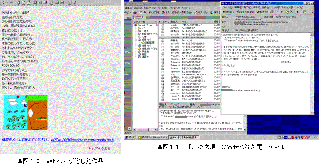 それぞれの詩に対して,家でみた家族から電子メールが届き始めた。家で相対して会話をするだけでなく,文章表現を通して,親子のコミュニケーションがはじまった。<図11>