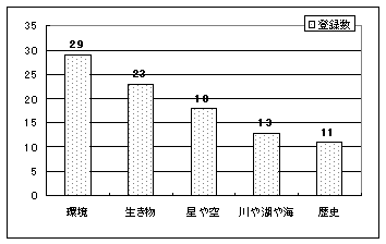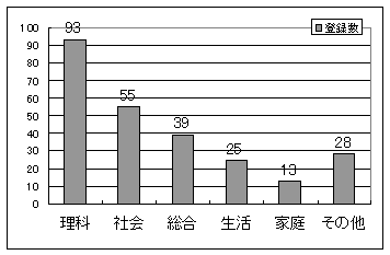 環境教育での取り組みを事前に行っていたことから,環境に関連のあるカテゴリーに多く登録されていた。理科や社会に関連のあるカテゴリーが多かった結果となった。